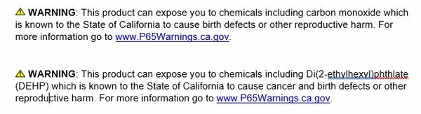 WARNING: This product can expose you to chemicals including carbon monoxide which is known to the State of California to cause birth defects or other reproductive harm. For more information go to www.P65Warnings.ca.gov.
