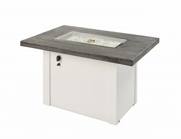 Find your new contemporary art piece with Outdoor Greatroom Company. The Outdoor Greatroom Company Stone Grey Havenwood Rectangular Gas Fire Pit Table is a great addition to your backyard this season. This fire pit table comes with a 12 x 24 Crystal Fire Plus burner, and the Stone Grey Everblend top is handcrafted making it a one-of-a-kind variation in design. Choose from a white or grey base that is sure to suit any backyard. With Outdoor Greatroom Company you will not only get function, but a piece of art that you can enjoy for years to come.