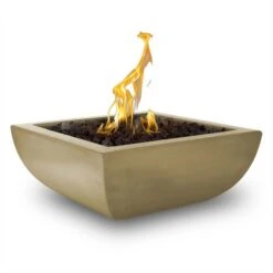 * Please Note: This item is custom made by the manufacturer and can not be cancelled or returned once the order is placed. *Also Note: Slight variations in color and texture may occur. *Please Note: This item is custom made by the manufacturer and can not be cancelled or returned once the order is placed unless the item is defective or damaged in transit. The perfect fire pit has a name: Avalon. The Outdoor Plus 24 Inch Avalon GFRC Square Gas Fire Bowl is everything you could want and more in a gas fire bowl. Constructed from glass fiber reinforced concrete, this 24″ square bowl is individually handmade, manufactured in the United States, has a number of different finishes to choose from, and has a 304 stainless steel burner and burner pan. As a gorgeous curved structure that’s a modern take on the traditional tapered square bowl, this is one fire bowl you can count on. It generates up to 45k BTUs and has different fuel and ignition types to choose from. So look no further for the perfect fire bowl today!