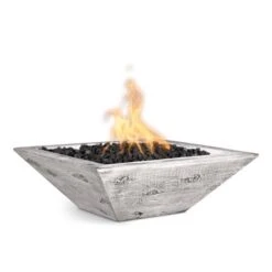 * Please Note: Slight variations in color and texture may occur. *Also Note: This item is custom made by the manufacturer and can not be cancelled or returned once the order is placed. *Also Note: Use only a breathable cover material with this fire feature. Do not use a plastic/non-breathable cover, this may result in the cover sticking to the fire feature. *Please Note: This item is custom made by the manufacturer and can not be cancelled or returned once the order is placed unless the item is defective or damaged in transit. The Outdoor Plus 30 Inch Maya Wood Grain Gas Fire Bowl benefits from heavy-duty concrete construction that makes it incredibly durable, allowing it to operate safely outdoors without being compromised by rough weather. This durable concrete bowl boasts a stylish wood grain finish that is available in multiple colors and creates a rustic and attractive look for the bowl. Each fire bowl is individually handmade, and the care and effort put in will surely show when you see it in action.