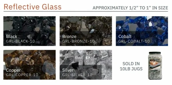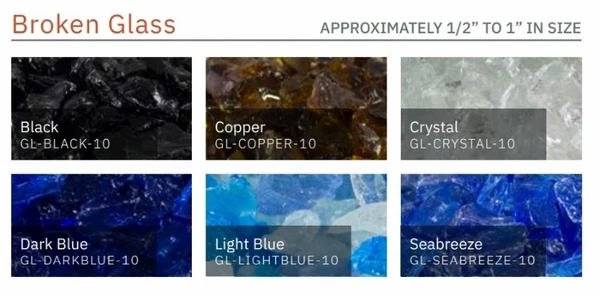 * Please Note: Example photos shown with Seabreeze, Reflective Silver, and Reflective Black fire glass. *Also Note: Refer to media guide to determine how much fire glass is needed for your TrueFlame fire pit and burner. There’s nothing like the glitter and shine of flames reflecting off the glass. TrueFlame’s fire pit glass media provides the perfect dance floor upon which your fire will flicker. This gas fire pit media sparkles in cool tones, metallic splendor, or svelte black and crystal clear. Add wholly Broken Glass media to your outdoor fire pit for a classic look, or choose from several highly reflective finishes to introduce a real “wow” factor to your fire bowls. You can even mix and match colors for a truly unique look- the possibilities are endless with TrueFlame. Be the first to review “TrueFlame Fire Pit Fire Glass Media – 10 Pounds”LoginRegister |
